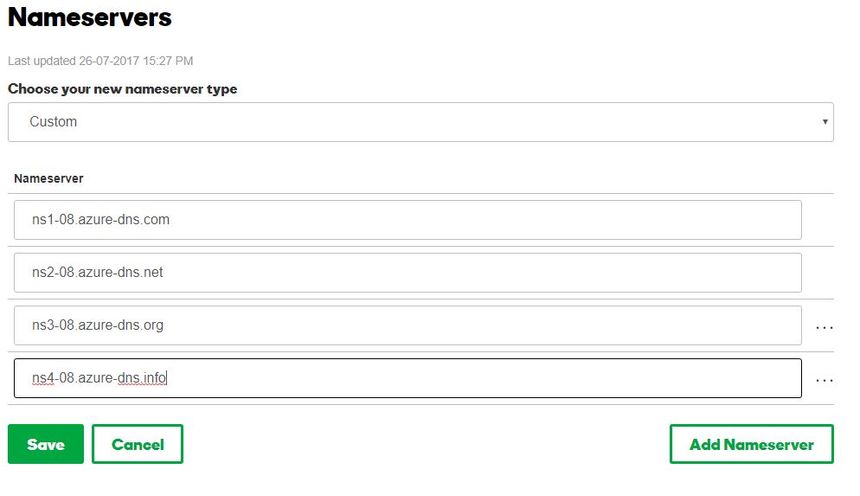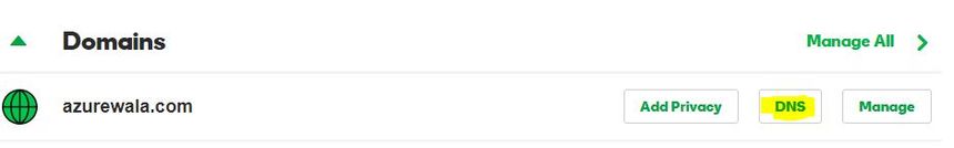 Note: Copy and paste the Name Servers from Azure DNS to GoDaddy