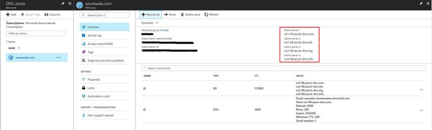 Step3: Once Azure DNS zones created you can see four Name Servers.