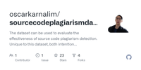 GitHub - oscarkarnalim/sourcecodeplagiarismdataset: The dataset can be used to evaluate the effectiveness of source code plagiarism detection. Unique to this dataset, both intention to plagiarise and advanced plagiarism attacks are considered in its construction.