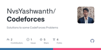 GitHub - NvsYashwanth/Codeforces: Solutions to some CodeForces Problems · GitHub