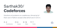 GitHub - Sarthak30/Codeforces: Solutions of problems on codeforces. Almost all of them are in Python except a few which are in C/C++.