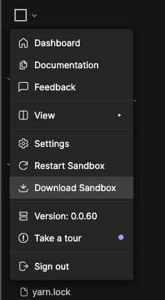 After forking a sandbox we can download the whole project by hovering over main menu at top left and click download sandbox :