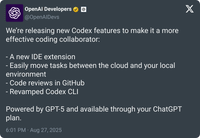 r/ChatGPTCoding on Reddit: Codex now runs in your IDE, Cloud and CLI with GPT-5