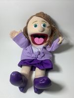 This 25” Sarah puppet is lovely - a very durable, full body, performance quality, ventriloquist puppet. She can be used as a mother, teacher, business lady, etc. Most recently she has become famous for her role on SML puppets as Bowser's Mother. She’s wearing a purple skirt, purple sweater, purple high heels, and white shirt. She has brown hair and green eyes (clothing may vary slightly due to fabric availability). The shoes on this puppet are sewn in but the rest of her outfit is removable and she wears child size 18mths clothing.