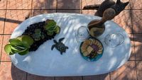 Our marble pieces vary by nature - As these pieces are not factory made, variations are to be expected and are what make each piece unique. Each table is handcrafted by skilled artisians which provides the iconic chipping a