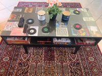 October 29, 2019 - The coffee table and the glass top are both from Ikea! Here is the link: https://www.ikea.com/us/en/p/regissoer-coffee-table-brown-glass-20342074/ ... Looks lovely and interesting, not too busy at all. A friend of mine made a table like that with family pics in it and it was so fun to look at.