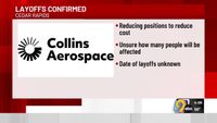 Published: Jun. 12, 2025 at 3:03 PM CDT · CEDAR RAPIDS, Iowa (KCRG) - Collins Aerospace is laying off a “small number” of positions as part of a restructuring plan. On Thursday afternoon, TV9 received a statement from a Collins Aerospace ...