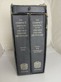 New ListingCompact Edition of the Oxford English Dictionary 2-Vol. Set w/ Case + Glass 1971 ... 5.0 out of 5 stars.1 product rating - Compact Edition of the Oxford English Dictionary 2-Vol.