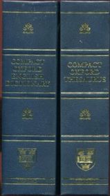 Compact Oxford English Dictionary + Compact Oxford Thesaurus Bonded Leather VG+ A very nice set. No names or writing and almost no wear.