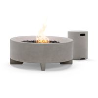 Modern Concrete Design: Sleek, minimalist concrete construction adds a contemporary touch to any outdoor space. Built-In Ignition System: Quick and easy start-up with an integrated ignition system. Concealed Propane Tank Storage: Discreetly hides the propane tank within the base, maintaining ...