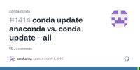 *PLEASE read the docs before executing "update --all"! This does not lead to an update of all packages by nature. Because conda tries to resolve the relationship of dependencies between all packages in your environment, this can lead to DOWNGRADED packages without warnings.