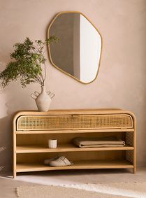 If grand, site-built entryway furniture feels like a bit too much, a console table is a space-efficient replacement. They’re narrow enough to fit neatly even in cramped hallways, while still offering the storage you need. Pick one with shelves so you can add boxes for the entire family’s set of hats, scarves, and gloves.