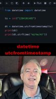 October 29, 2025 - datetime.timestamp() converts a datetime object to a Unix timestamp in seconds and returns a float. It assumes local time if no timezone is set. ... from datetime import datetime s = "20/01/2020" dt = datetime.strptime(s, "%d/%m/%Y") res = ...