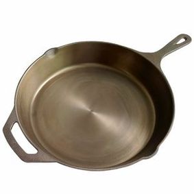Equipped with a large main handle, a generous helper handle, an easy to use pour spout, and with the smoothest polished interior cooking surface of any cast iron skillet on the market you won't want to cook with anything else.