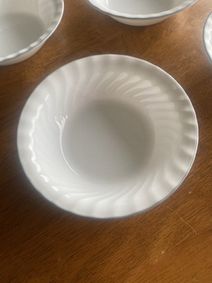 Explore vintage Corelle 4 oz bowls, including white swirl, red stripe, simple lines, and old town blue patterns. Perfect for cereal, soup, and ice cream.