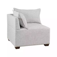 Create your ideal sofa setup with this Silver Gray Modular Corner Accent Chair. Its modern design is made up of a neutral hue and sleek silhouette, perfect for elevating your effortlessly-chic style. Chair measures 34L x 34W x 28H in.; seat measures 18H in. Crafted with a solid wood, plywood, and wood composite frame High-density foam fill Upholstered in a silver gray polyester fabric Dark espresso wood leg finish Corner chair design Removable pillows Includes plastic glides Weight capacity: 300 lbs. Assembly required Not intended for commercial use Care: Spot clean only. This item is availabl