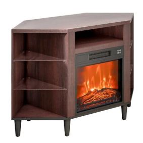 One of our top-rated fireplace tv stands is the Camden 48 in. Dark Walnut Wood Corner TV Stand Fits 50 in. TV with Cable Management.