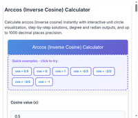 miniwebtool.com › home page › math › trigonometry calculators › arccos (inverse cosine) calculator