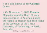 The cosmos is vast and mysterious. ... She planted cosmos in her garden for the summer.