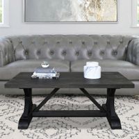 Solamar Coffee Table, Wire Brushed, Textured Finish, Black Finish, Textured Top and Trestle Base, By Abbyson