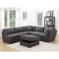 Norris 6-piece Fabric Modular Sectional, Color: Gray, Material: 95% Polyester and 5% Nylon, 3 Armless Chairs, 2 Corner Chairs and 1 Ottoman, Tufted Surfaces, Solid Wood Legs in Black Finish