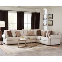 Drayden Fabric Sectional with Ottoman Pocket Coil Seat Cushion Sinuous Spring Seat Support Foam and Poly-Fiber Back Cushions Solid Wood Legs Neutral Fabric Color