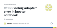 When I attempt to debug a cell in a jupyter notebook, the debug sidebar opens, the little blue thing goes back and forth (sometimes), the terminal echos the debug command (sometimes), the debug control strip opens with only restart and stop available, and that’s as far as it gets. If I click Restart, it says RUNNING under the call stack. Sometimes I get the error Couldn't find a debug adapter descriptor for debug type 'python'