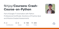 GitHub - fkhjoy/Coursera-Crash-Course-on-Python: Part of Google IT Automation with Python Professional Certificate. Solutions of Practice Quiz and Module Graded Assessments