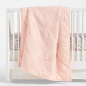 Soft, whimsical pink bedding with kittens, bunnies or fairy princesses is what dreams are made of for your precious little girl. Race cars, sports and outer space set the scene for an energetic little boy. Choose a Crate & Barrel exclusive blanket or quilt, fitted crib sheet, crib skirt, or the full matching set.
