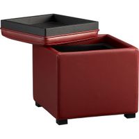 Check out our leather ottoman! This versatile piece can be used as an ottoman, coffee table, or extra seating, and it features a convenient tray top that is perfect for holding drinks or snacks.