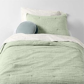 Browse our selection of kids green bedding. We currently have 22 products available to order. Looking for something less specific? Browse our full selection ofkids bedding by colorto find exactly what youโre looking for. Sweet dreams start here. Shop new arrivals and all the classics, from trending terracotta to classic blush pink in our softest organic cotton.