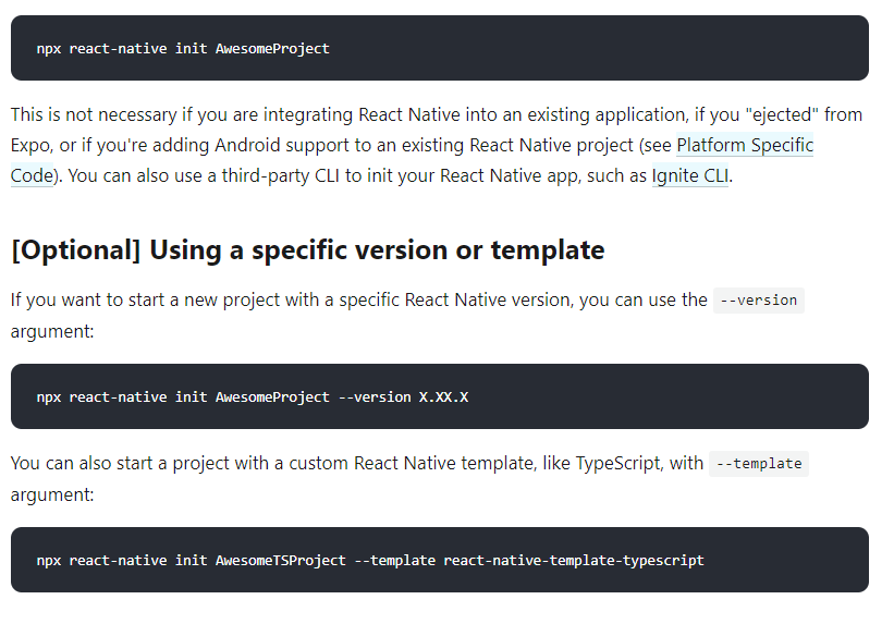 rninit is a replacement for react-native init that allows you to specify a particular version of react-native to use.