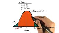 In the offline version, you use a z score table (aka a z table) to look up the critical value for the test based on your desired level of alpha. Remember to adjust the alpha value based on wether you are doing a single-tailed test or two tailed test. In this case, we can simply split the value ...