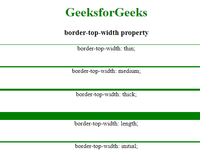 The border-top-width property is used in CSS and certain HTML elements. This property controls the thickness (width) of the top side of the border of an element's rendering box. Negative values are not allowed.