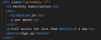 The simple selectors in your example would be the two div tokens that you have. Other simple selectors include class selectors, ID selectors, attribute selectors and pseudo-classes. It does not accept more than one simple selector, nor does it accept combinators like > or space.