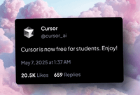 Eligible university students get one free year of Cursor Pro. ... Cursor helps me get significantly more done in less time and actually focus on the parts I enjoy most, like performance tuning and interface design, instead of getting bogged ...