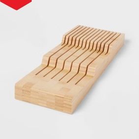 Rev-A-Shelf Trim-to-Fit Silverware Drawer Organizer For Kitchen Utensils, Cutlery Cabinet Storage Divider Insert, 33" x 22", Maple Wood, 4WUTCT-36-1 · Rev-A-Shelf Dual Row Trim To Fit Knife Block Drawer Organizer with Storage Holder for Kitchen Utensils, 55 Slot Cutlery Tray, Wood, 4WDKB-1