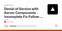 December 15, 2025 - These newly identified issues do not enable RCE, and the existing fixes successfully block that attack vector, according to the React team. However, they introduce new risks: two denial-of-service flaws (CVE-2025-55184 and CVE-2025-67779, with the CVSS score of 7.5) and a source code disclosure issue tracked as CVE-2025-55183, with a CVSS score of 5.3.