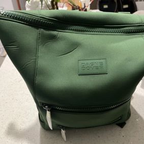 I do not have one. I do have a backpack with top handles like the Dagne Dover and I love being able to wear it or just grab it up if I need to. Outside pockets for when you're holding kids or junk and your bag is already on your back is a huge plus too!! I saw where it has a back sleeve to put it on a suitcase😍, so I'll be following this thread to see any recommendations on it!