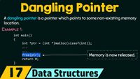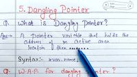 A dangling pointer is a pointer that points to invalid data or to data which is not valid anymore, for example: