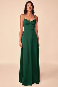 Explore Azazie's best dark green and emerald green bridesmaid dresses. Shop online for green gowns in A-line, chiffon, satin & more styles. Free custom sizing!