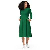 Solid Dark Green Midi Dress Women, Full Sleeves Evening Party, Round Neck Party Dress, Plain Summer Beach Dress, Casual Dress With Pockets - Etsy