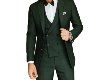 MEN GREEN SUIT | 3 Pieces Slim Fit Wedding Groom Suit | Men Dinner Party Prom Suit | Bespoke Suit For Men | One Button Dark Green Suit