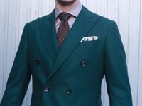 A green suit makes a bold statement, adding a vibrant and distinctive touch to your wardrobe.