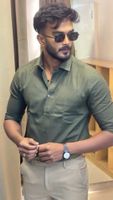 A dark olive green shirt works perfectly with straight fit trousers, giving a clean yet relaxed vibe. Pair an olive color shirt with beige or tan chino pant for a stylish, semi-formal touch.