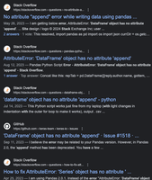 Answer from mozway on Stack OverflowAs of pandas 2.0, append (previously deprecated) was removed.
