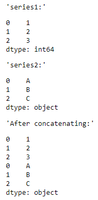 This keyword is now ignored; changing its value will have no impact on the method. Deprecated since version 3.0.0: This keyword is ignored and will be removed in pandas 4.0. Since pandas 3.0, this method always returns a new object using a lazy copy mechanism that defers copies until necessary (Copy-on-Write). See the user guide on Copy-on-Write for more details. ... When concatenating all Series along the index (axis=0), a Series is returned. When objs contains at least one DataFrame, a DataFrame is returned.
