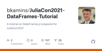 GitHub - bkamins/JuliaCon2021-DataFrames-Tutorial: A tutorial on DataFrames.jl prepared for JuliaCon2021