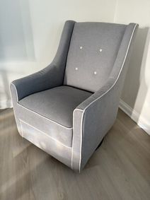 The Suzy Recliner and Swivel Glider has been thoughtfully crafted with cushioned armrests to provide optimal support and comfort to meet parent’s and baby’s feeding time needs. Moms and dads can rest easy in this comfortable, durable chair that swivels and has a smooth and easy-to-use mechanism that ensures a seamless transition from sitting to a peaceful reclined resting position. Designed with a high pillowback for head and neck support, you'll find yourself wanting to drift off into a peaceful slumber. This modern and versatile design can easily transition to your home in the later years. ·