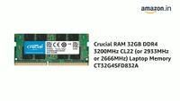 2. Crucial RAM 32GB DDR4 3200MHz CL22 Laptop Memory CT32G4SFD832A - https://www.amazon.in/gp/product/B07ZLC7VNH/ref=ox_sc_saved_title_2?smid=A1CSI2DZQBS3OV&th=1